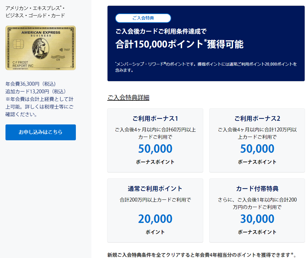 ▶ アメックス ビジネスゴールドカードの新規入会キャンペーン
